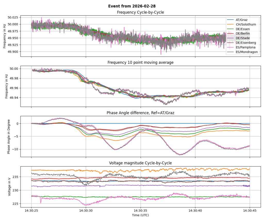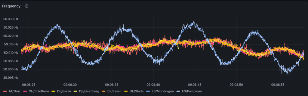 A detailed view of the oscillation on the iberian peninsula. The voltage was surprisingly not affected by this oscillation.