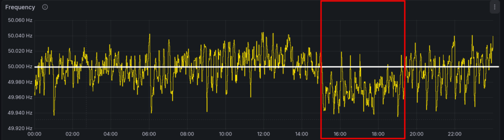 2026-02-18 15:00 – 19:00 (CET): 4-hour phase of low Frequency
