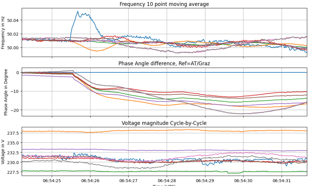 • Resolution Matters: Traditional 10-minute or even 10-second averages hide the „true“ life of the grid. To see cross-regional dynamics, sub-second measurement resolution is essential.