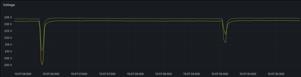 While voltage harmonics at different sites may occasionally show similar shapes, this is usually due to synchronized human behavior (e.g., industrial shifts or typical daily cycles) rather than electrical propagation. You can clearly see the „signature“ of a typical working day versus a weekend in the time-series data.