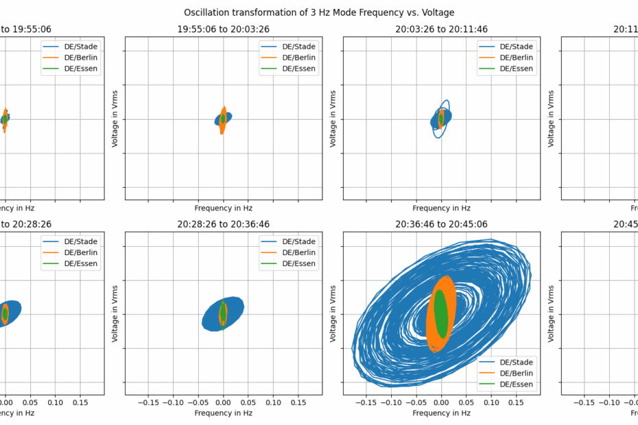 In the evening of the 5th of October, between 20:00 and 20:40 CET, a strong 3 Hz oscillation of power frequency and voltage was detected from the PQopen measurement system… Weiterlesen »Oscillation on 5th of October – An Analysis